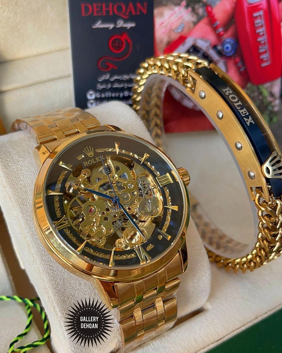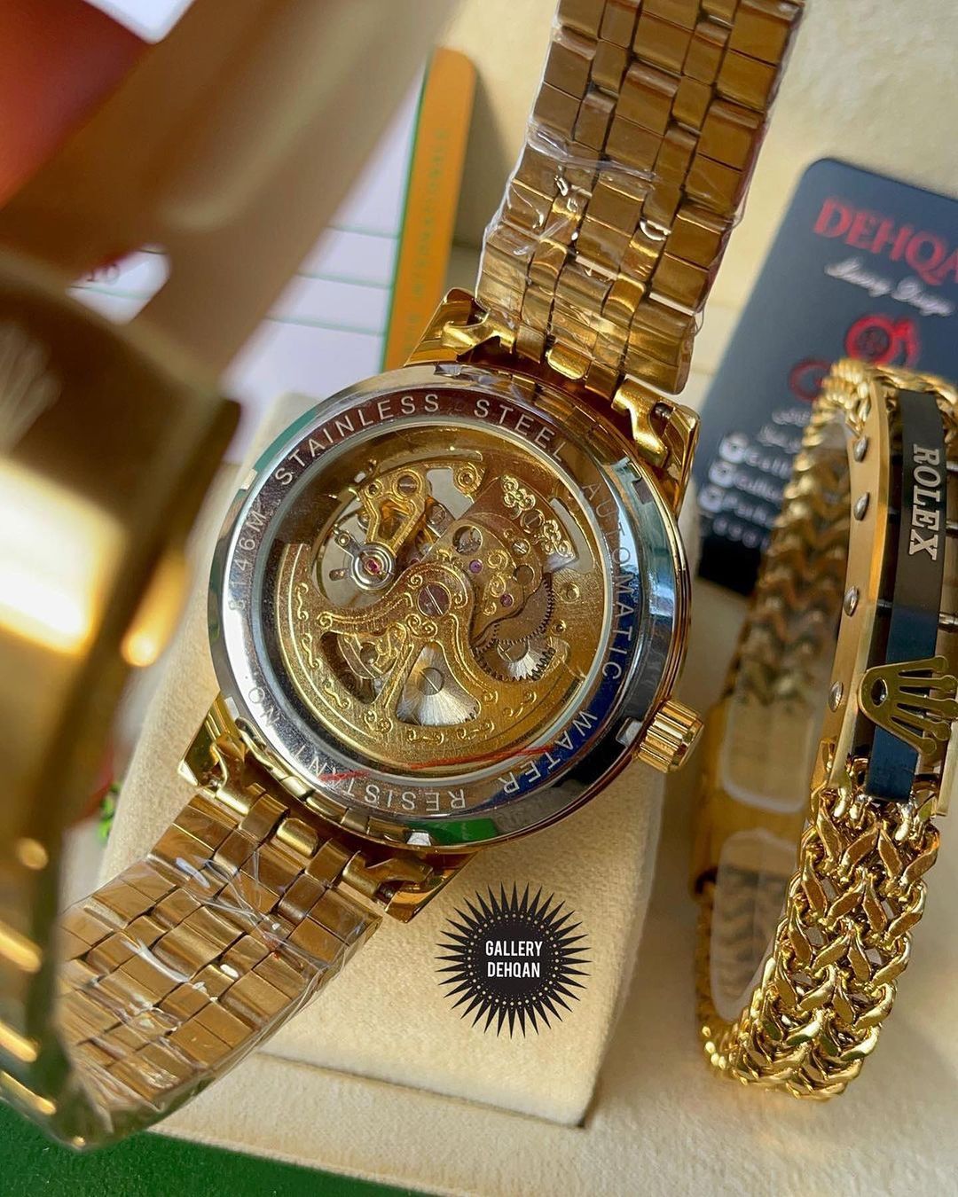 رولکس اتوماتیک ژاپنی طلایی صفحه مشکی